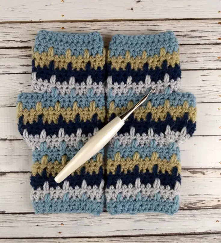 The TC Crochet Fingerless Mittens feature a subtle peak of color thanks to rows of single crochet in a contrasting yarn.